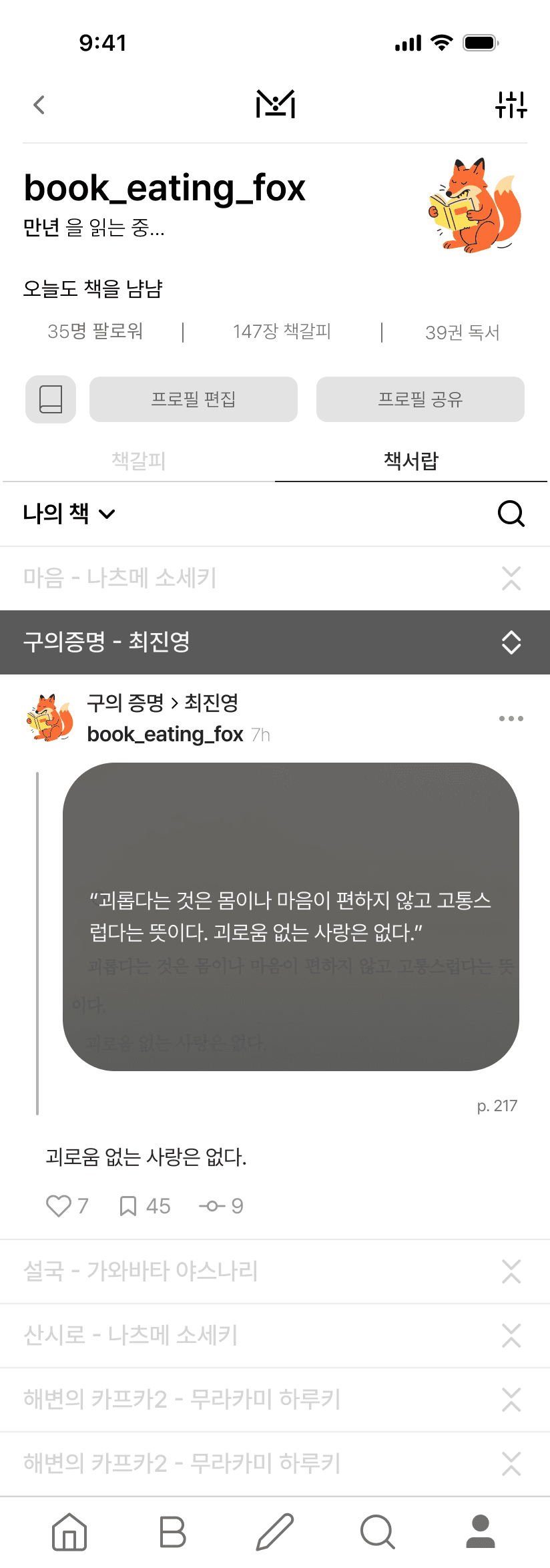 독서를 기록하고, 서로의 일상을 공유해보세요.